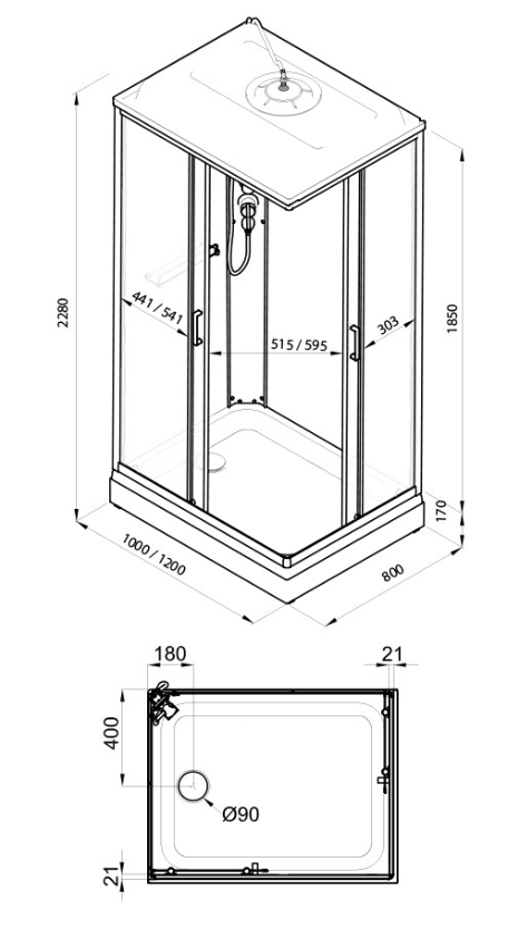 Технические характеристики (ТТХ) душевой кабины Тритон Квадро 100×80 А Полосы, ДН4 (7 мест + сифон D90)