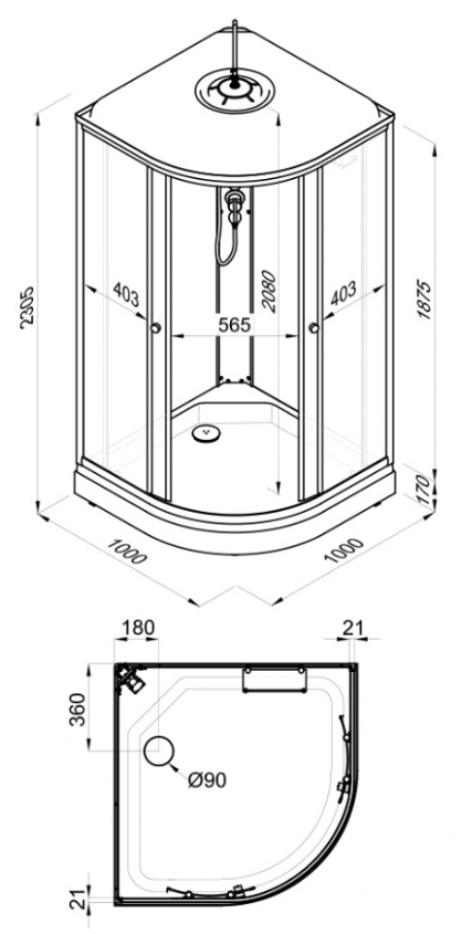 Технические характеристики (ТТХ) душевой кабины Тритон Лайт 100×100 А