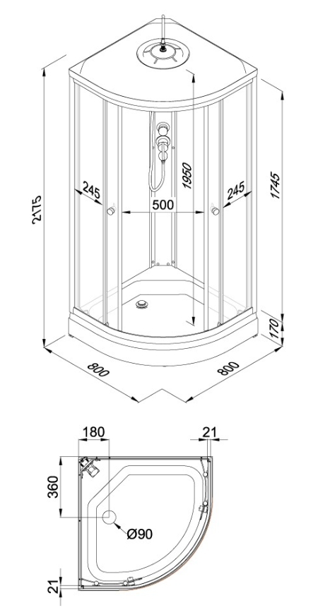 Технические характеристики (ТТХ) душевой кабины Тритон Ультра 80×80 А ДН4