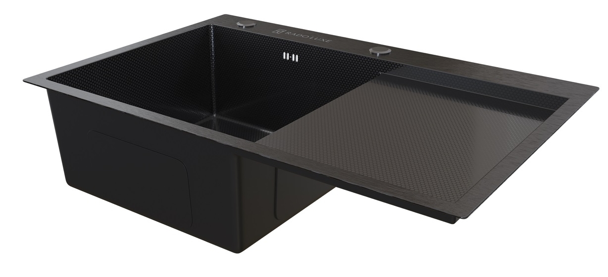 Хотите просторную кухонную мойку с матовым графитовым покрытием и левой ориентацией? Берите RADO LUXE 77/50/22 графит декор левая прямо сейчас — на складе в Донецке. Оформляйте заказ и получите быструю доставку по всей ДНР.