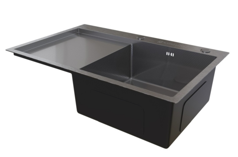 Хотите большую кухонную мойку с глубоким матовым тёмно-графитовым покрытием и правой ориентацией? Берите RADO LUXE 77/50/22 темный графит декор правая прямо сейчас — на складе в Донецке. Оформляйте заказ и получите быструю доставку по всей ДНР.